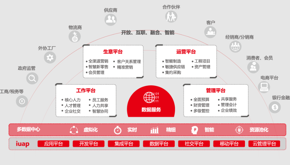 用友NC Cloud基于iuap社會化商業(yè)應(yīng)用基礎(chǔ)平臺,圍繞人、財、物、客四大管控對象,幫助企業(yè)構(gòu)建面向社會化商業(yè)的工作平臺、管理平臺、運營平臺和生意平臺,連接全球、全網(wǎng)、全域資源,賦能企業(yè)實現(xiàn)基于技術(shù)驅(qū)動的業(yè)務(wù)變革和商業(yè)創(chuàng)新。