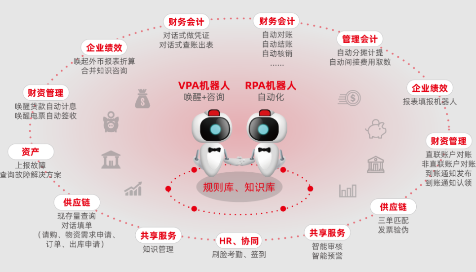 用友NC Cloud 應(yīng)用人工智能技術(shù)(例如:交互式語音、LBS、OCR技術(shù)),結(jié)合實際業(yè)務(wù)場景,全新設(shè)計VPA工作助手(人機交互、智能問答......)、RPA流程機器人(自動對賬、結(jié)賬、核銷、發(fā)票驗偽、三單匹配、報表填報......),用AI技術(shù)引領(lǐng)智能應(yīng)用新方向,重塑用戶新體驗。