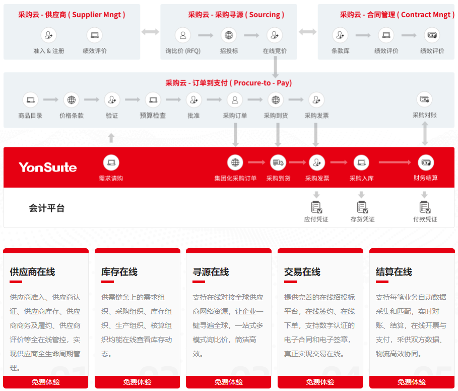 采購供應(yīng)是支撐企業(yè)生產(chǎn)經(jīng)營的重要業(yè)務(wù)。YonSuite 支持企業(yè)多種在線采購模式,通過采購服務(wù)實現(xiàn)在線的供應(yīng)商管 理、庫存管理、尋源比價、電子交易,并能實時在線對賬、結(jié)算和支付,幫助企業(yè)對接全球貨源,優(yōu)化采購流程,提升采購效率。